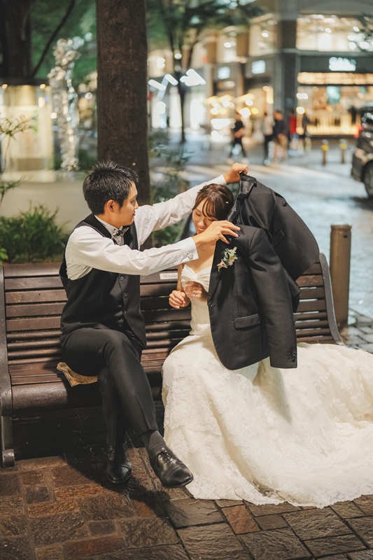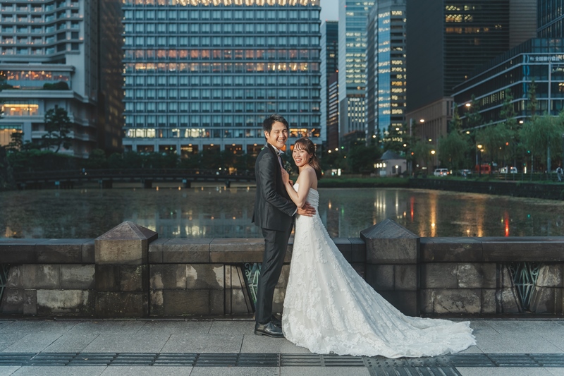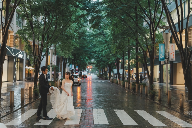 理由などを教えてください - 洋装では東京駅での撮影だったが、悪天候に見舞われても逆に雨ならではの写真も撮って頂いた。
