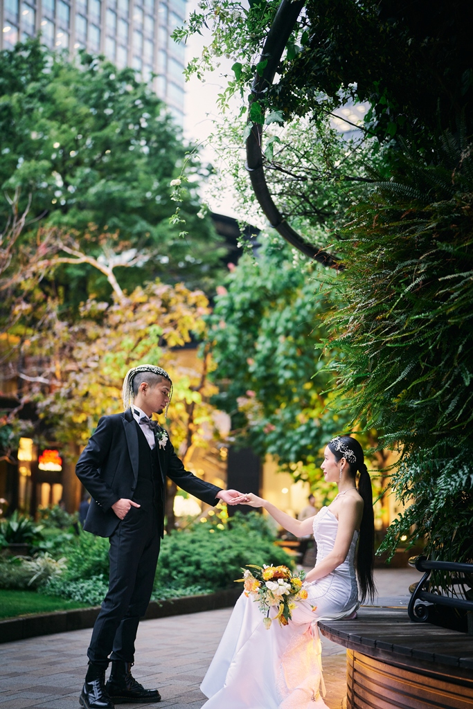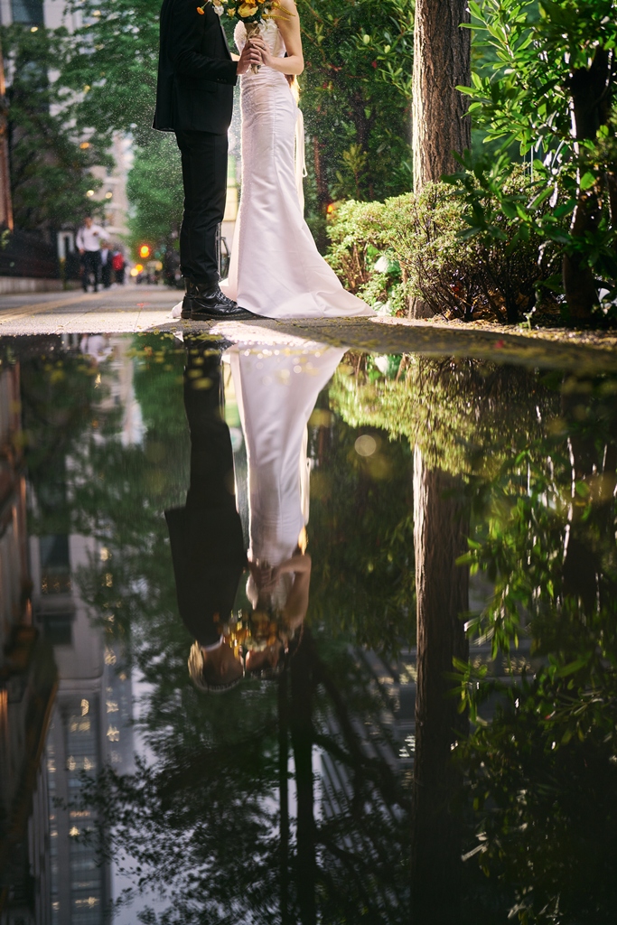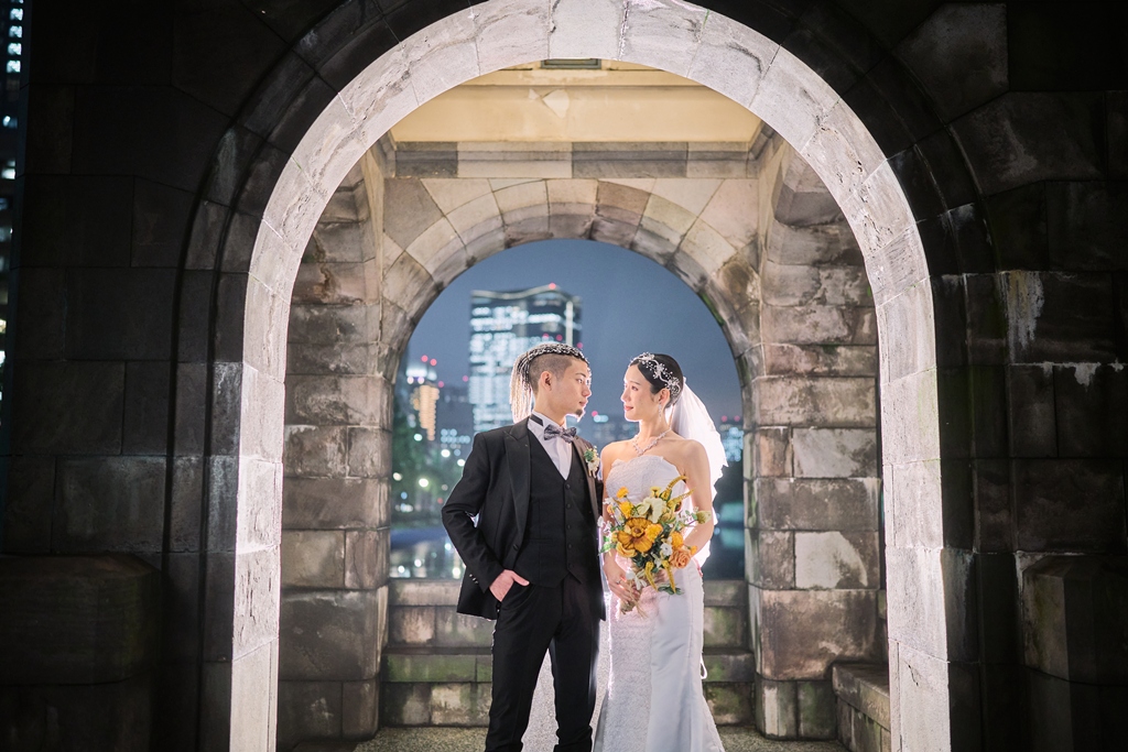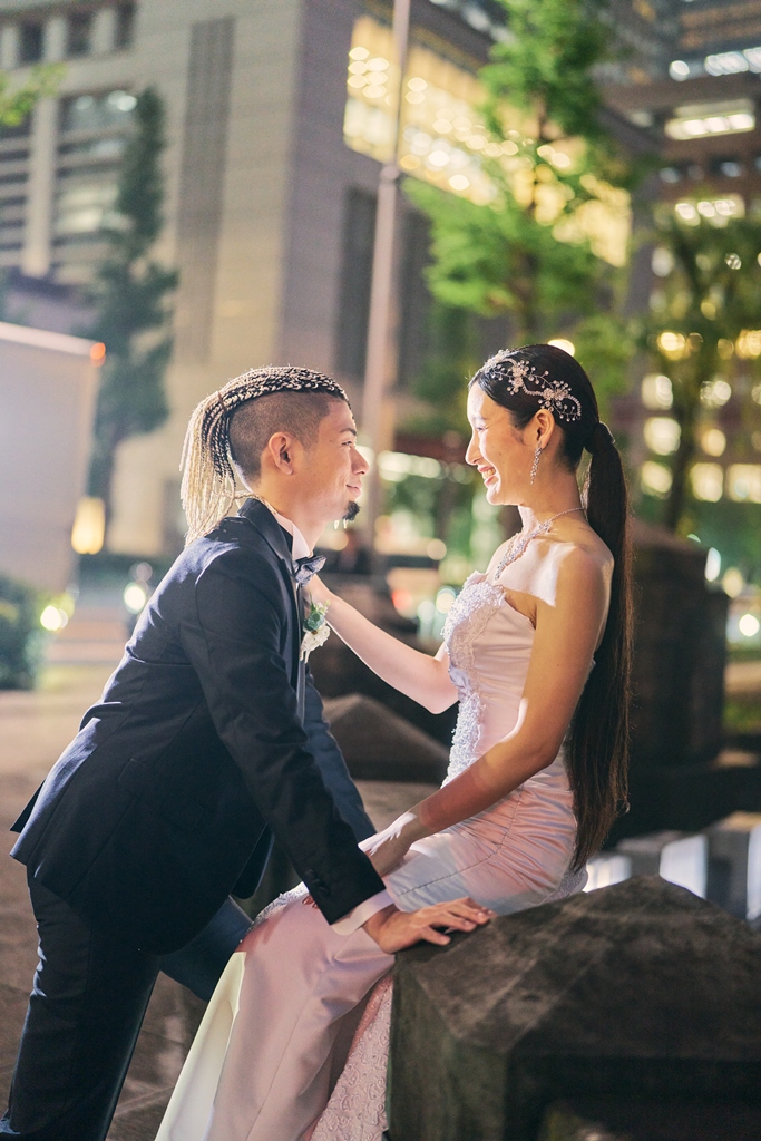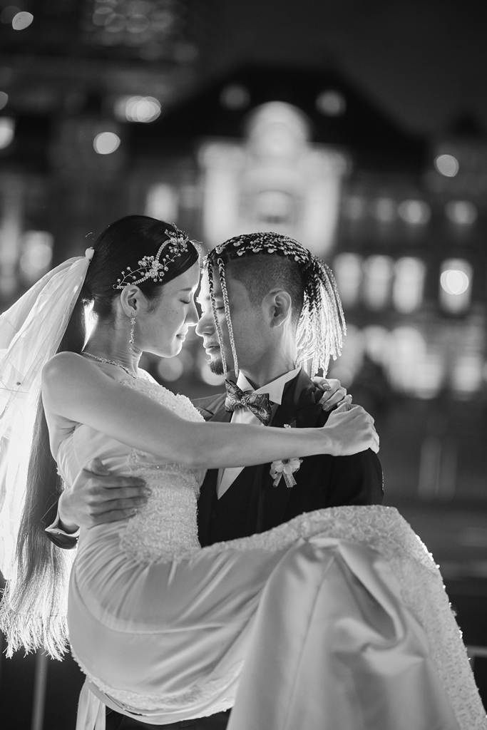クラシカルな赤レンガと近代的な街並みが共存する東京駅は、まさに「歴史と未来」が交差する特別な場所。そんな空間に、おふたりの洗練された洋装姿が見事に映えていて、シャッターを切るたびに、まるで映画のワンシーンを撮っているような感覚に包まれました。