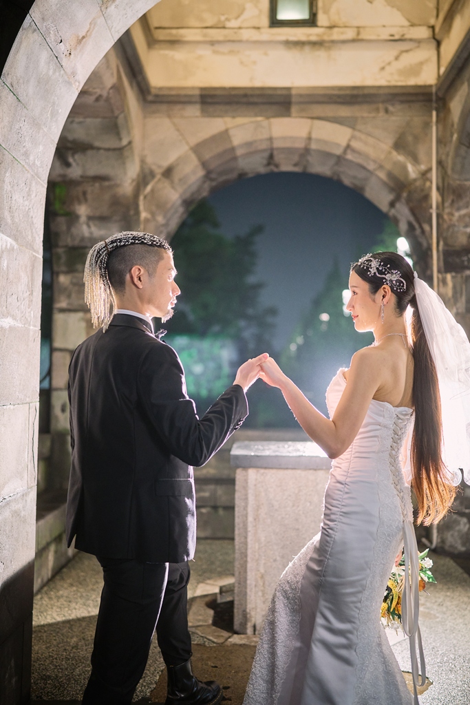 堂々とした佇まいの駅舎を背景に、おふたりが並んで歩くその姿には、気品と温かさ、そしてこれから始まる人生への希望が溢れていました。ときには笑い合い、ときにはふと見つめ合う自然な瞬間がとても美しく、「本当にいいご縁で結ばれたおふたりなんだな」と、撮影チーム一同、胸が熱くなる場面ばかりでした。