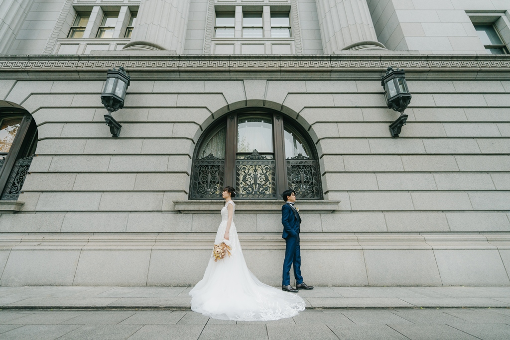 その美しい景観の中で撮影したおふたりの姿は、まるで映画のワンシーンのように印象的でした。格式とモダンが共存するこの場所での撮影は、おふたりにとっても、特別な思い出になったのではないでしょうか。
