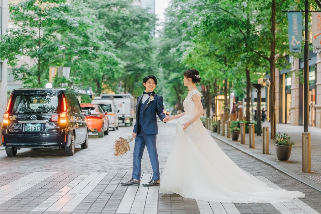 丸の内の風景が引き立てた、ドレス姿の美しさ