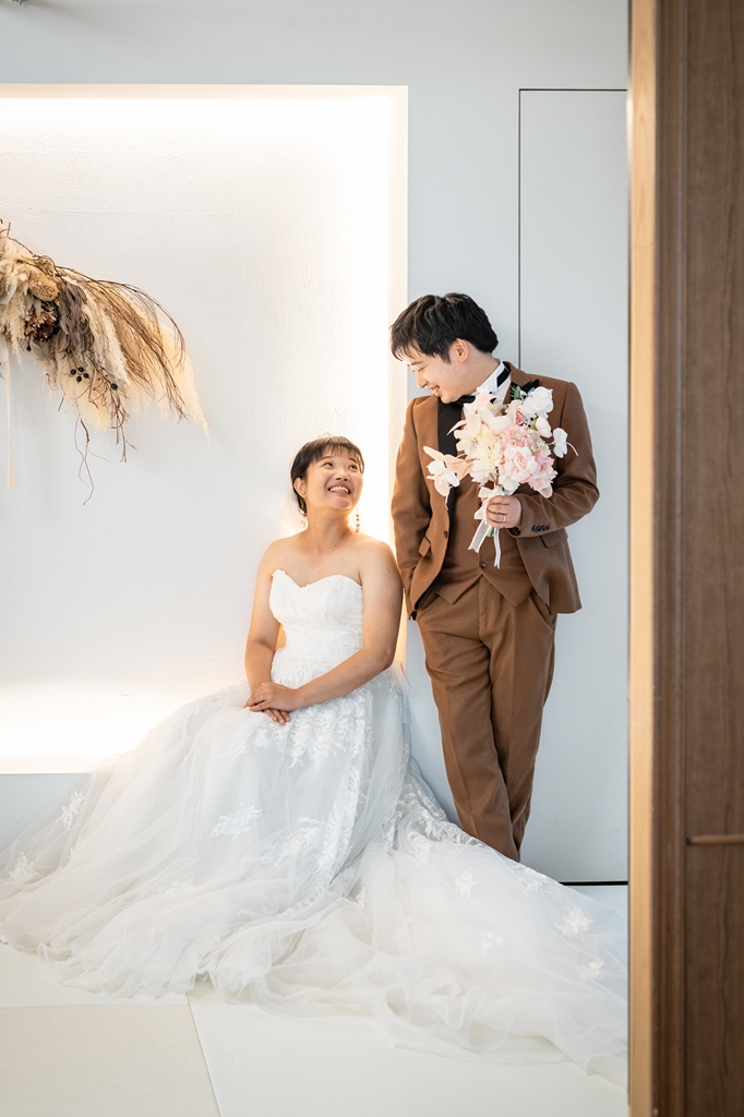 屋内ならではの安心感と、洗練された空間デザインの中で、お二人のナチュラルな笑顔やしっとりとした瞬間まで丁寧に残すことができました。