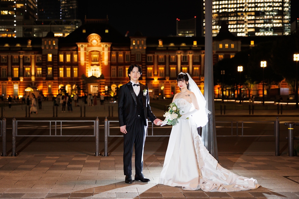 撮影当日、おふたりが見せてくださった自然な笑顔や、そっと手を取り合う仕草から、深い絆と未来への希望が伝わり、私たちスタッフも心を打たれました。東京駅という象徴的な場所で、これからの人生のスタートを刻むような撮影は、おふたりにとってかけがえのない思い出となったことと思います。