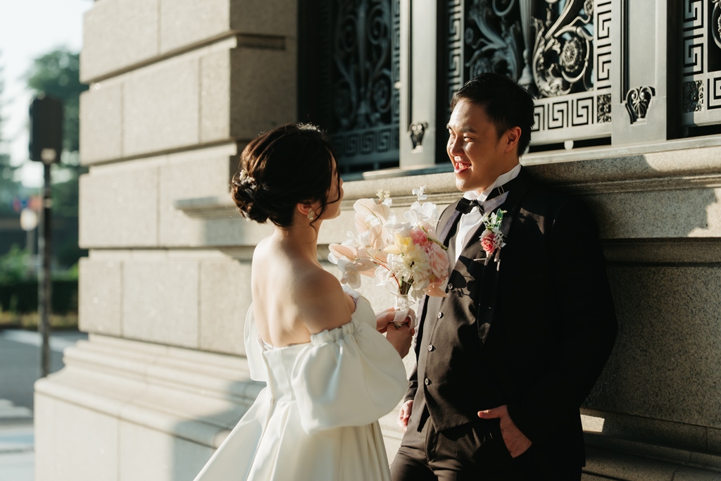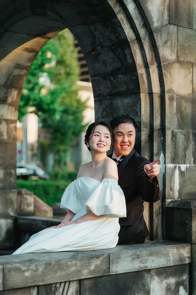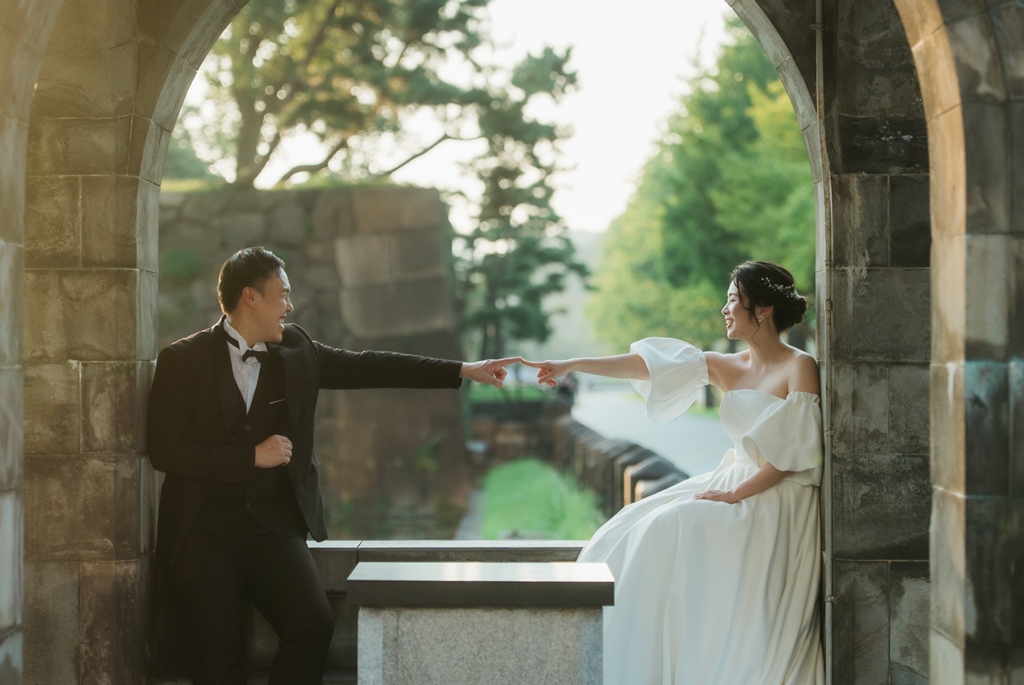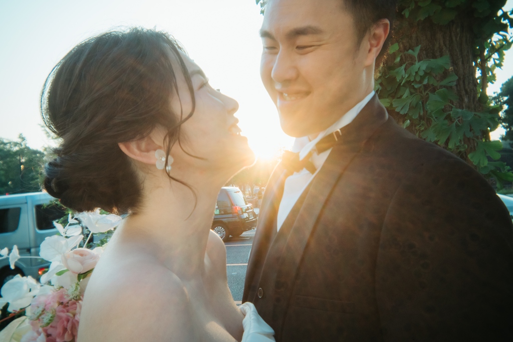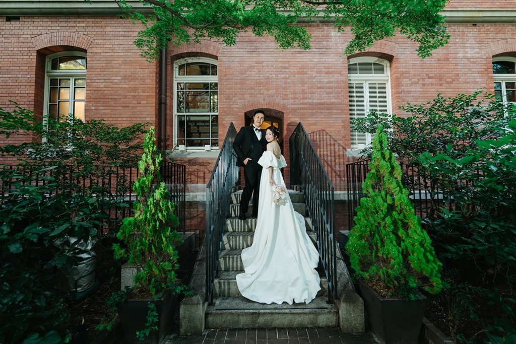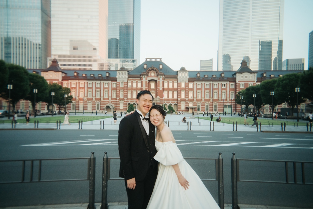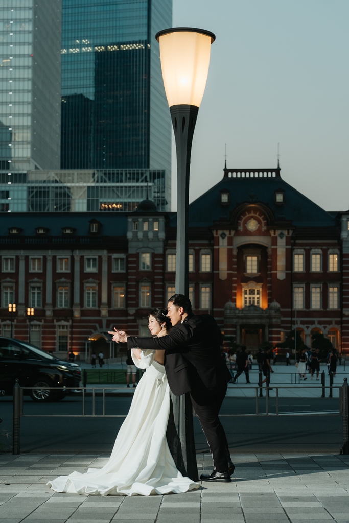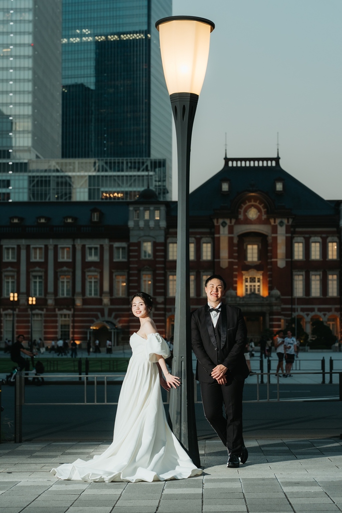 歴史あるランドマークの象徴的な建築と洗練された街の雰囲気の中で、お二人が見つめ合う姿は、深い親密さと穏やかさに満ちた瞬間を生み出し、一生大切に残る思い出となりました。東京駅は、歴史、現代性、そして優雅さが共存する特別な場所です。