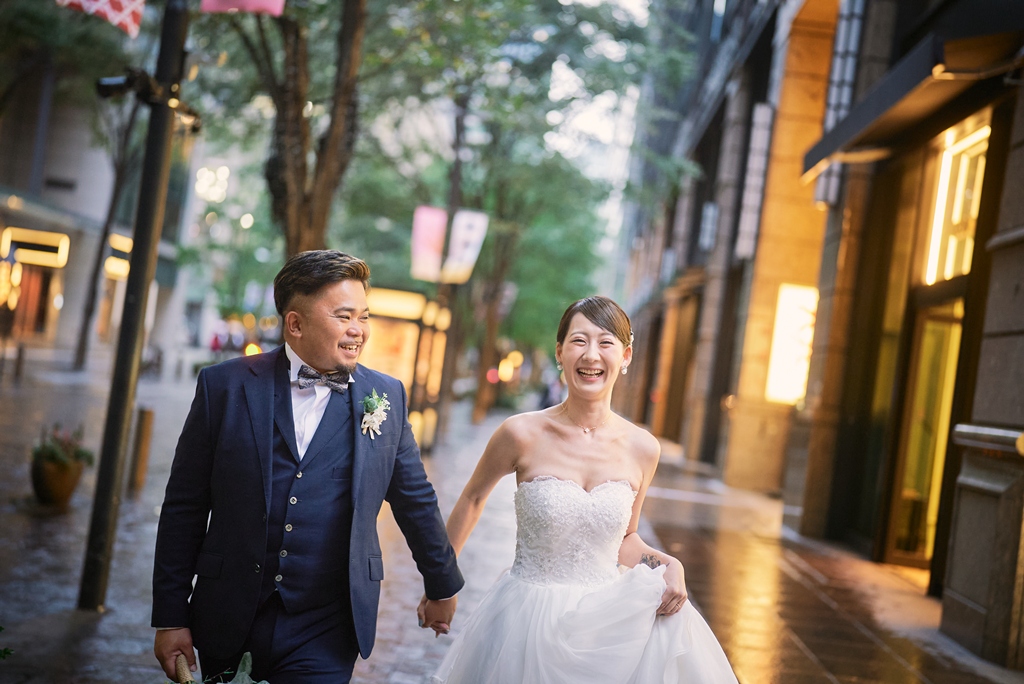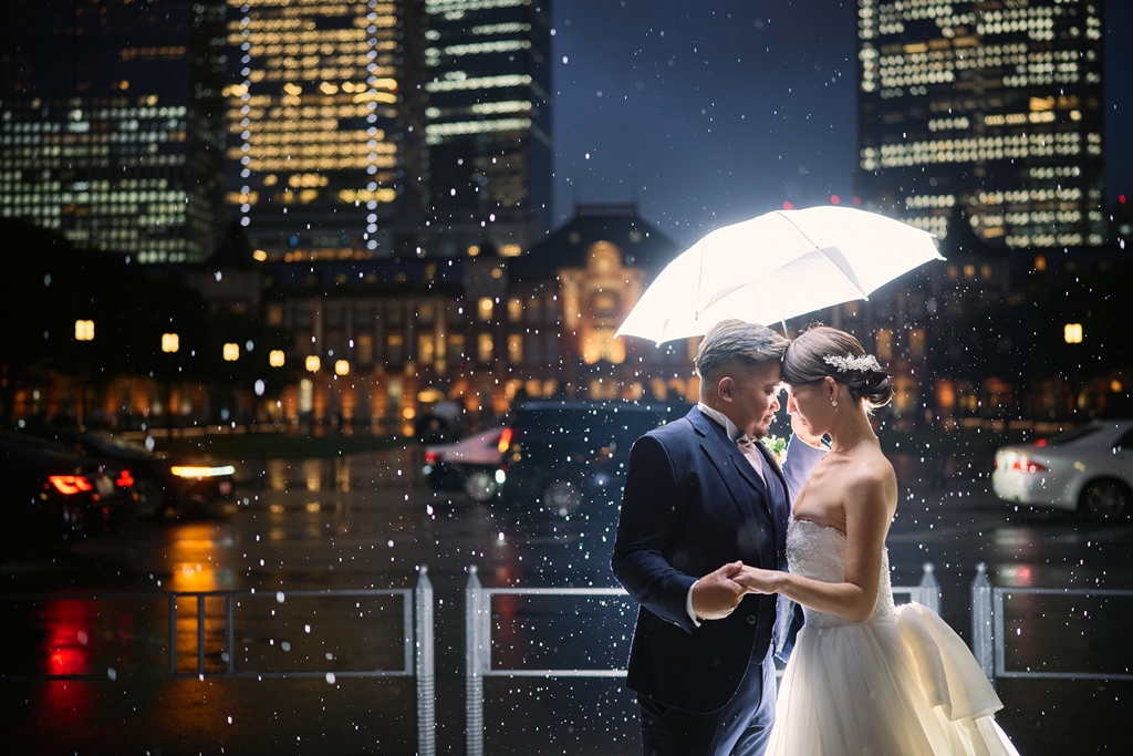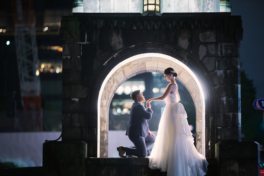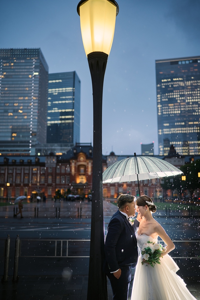 時間とともに表情を変える東京駅の景色と、おふたりの自然な笑顔が重なり合い、美しい物語が紡がれていたように感じます。特に印象的だったのは、おふたりが心から楽しんでくださっていたことです。