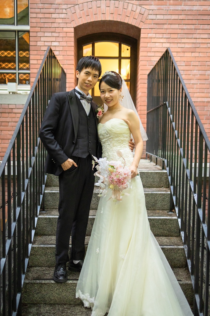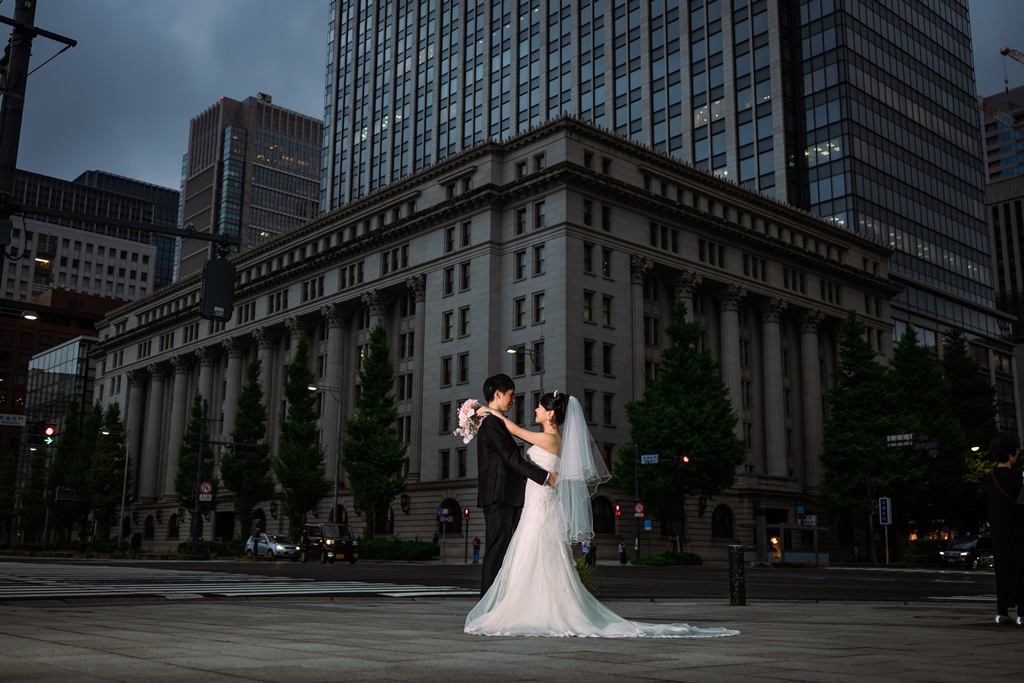撮影当日、ドレスとタキシードをまとったおふたりが東京駅前に立たれる瞬間、