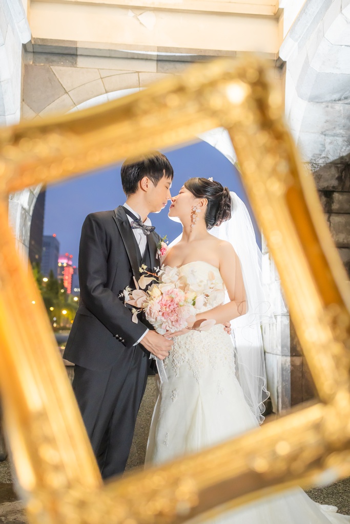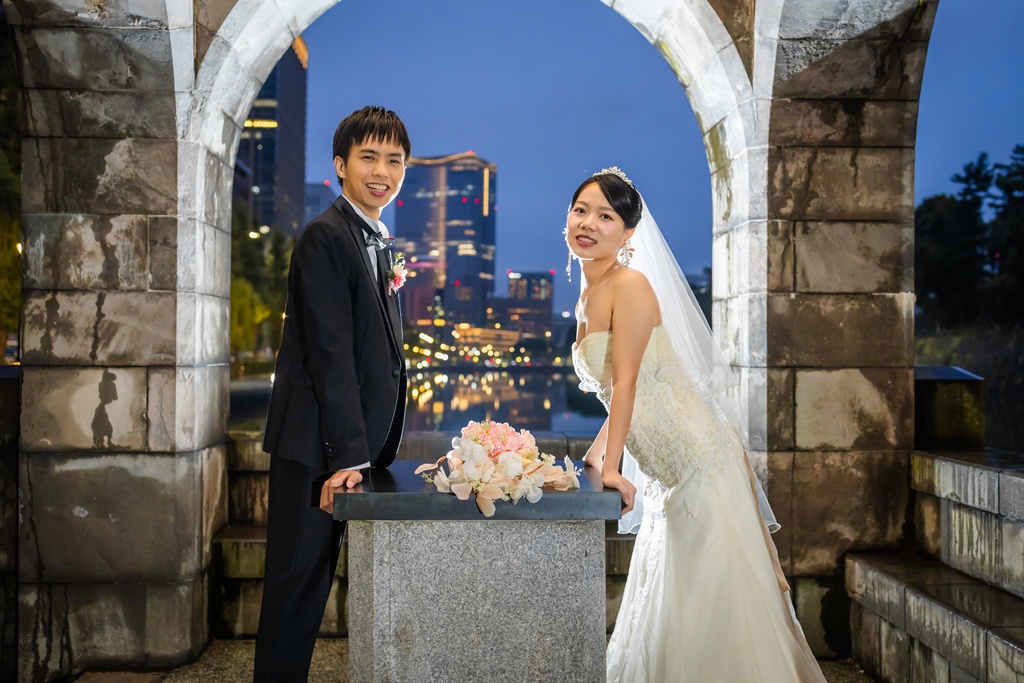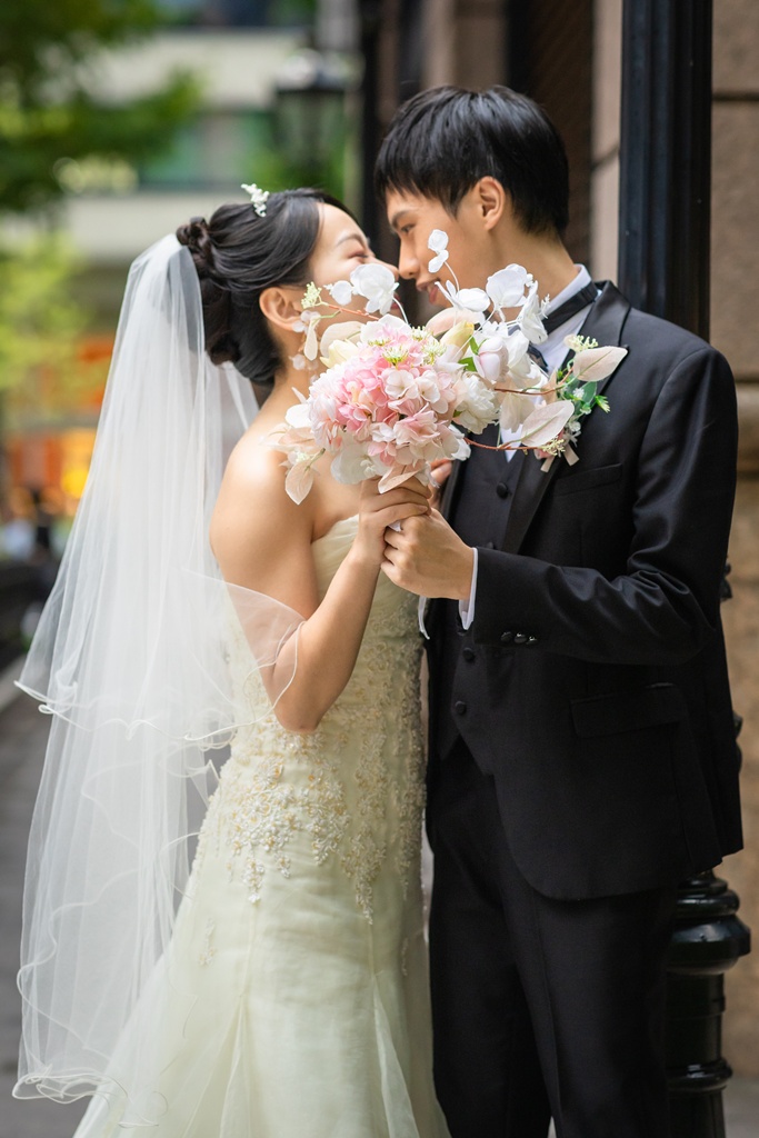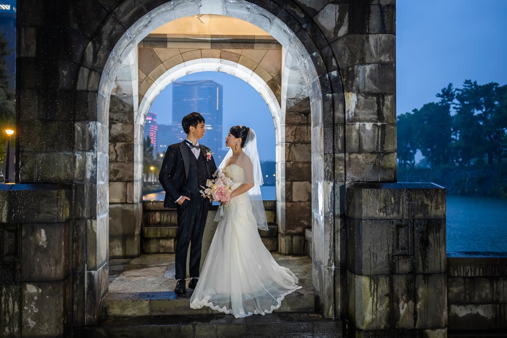 歴史ある建物の重厚さと、洗練された街の光が重なり、おふたりの前撮りを一層魅力的なものにしてくれました。