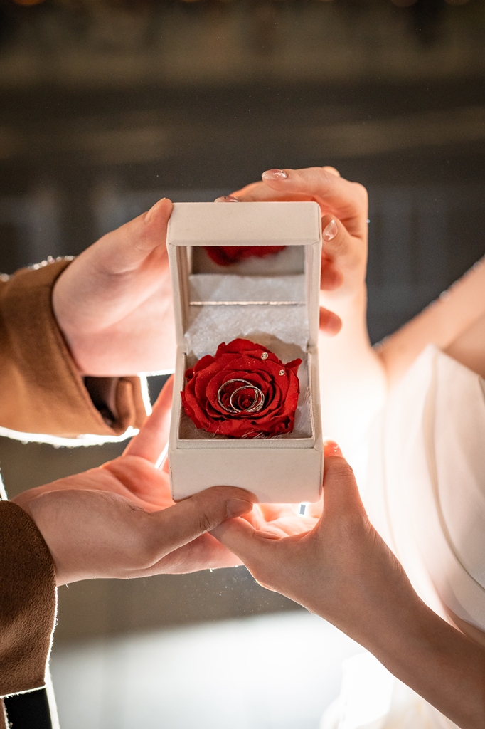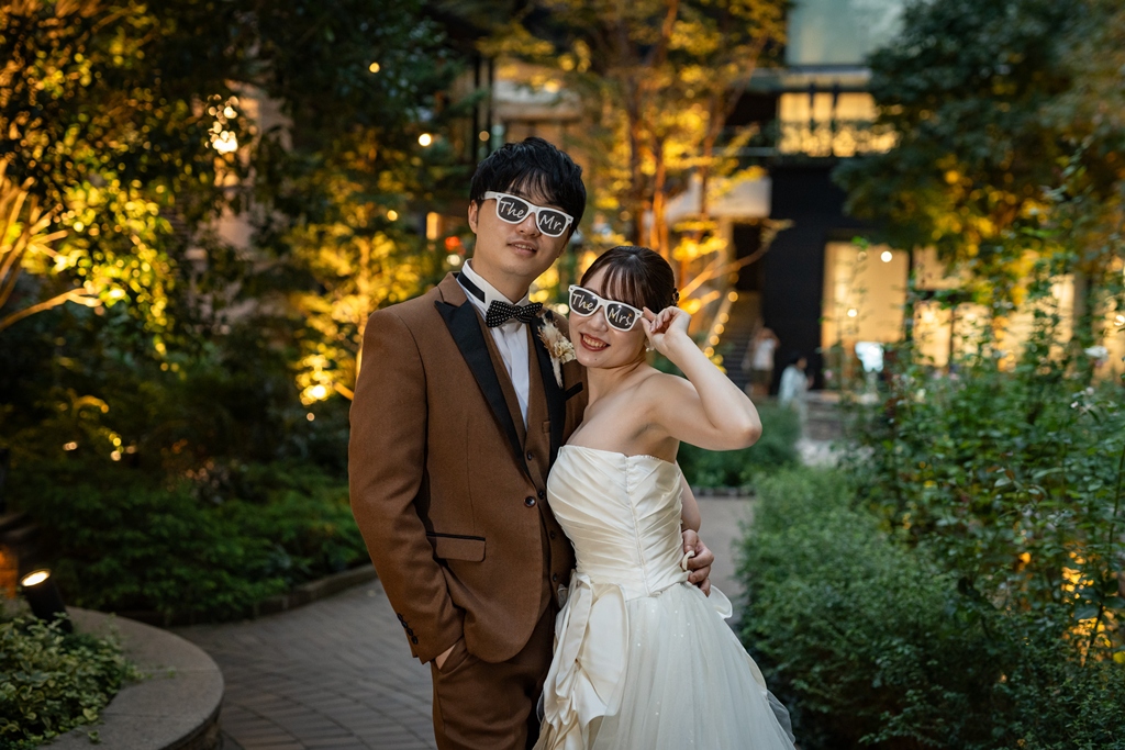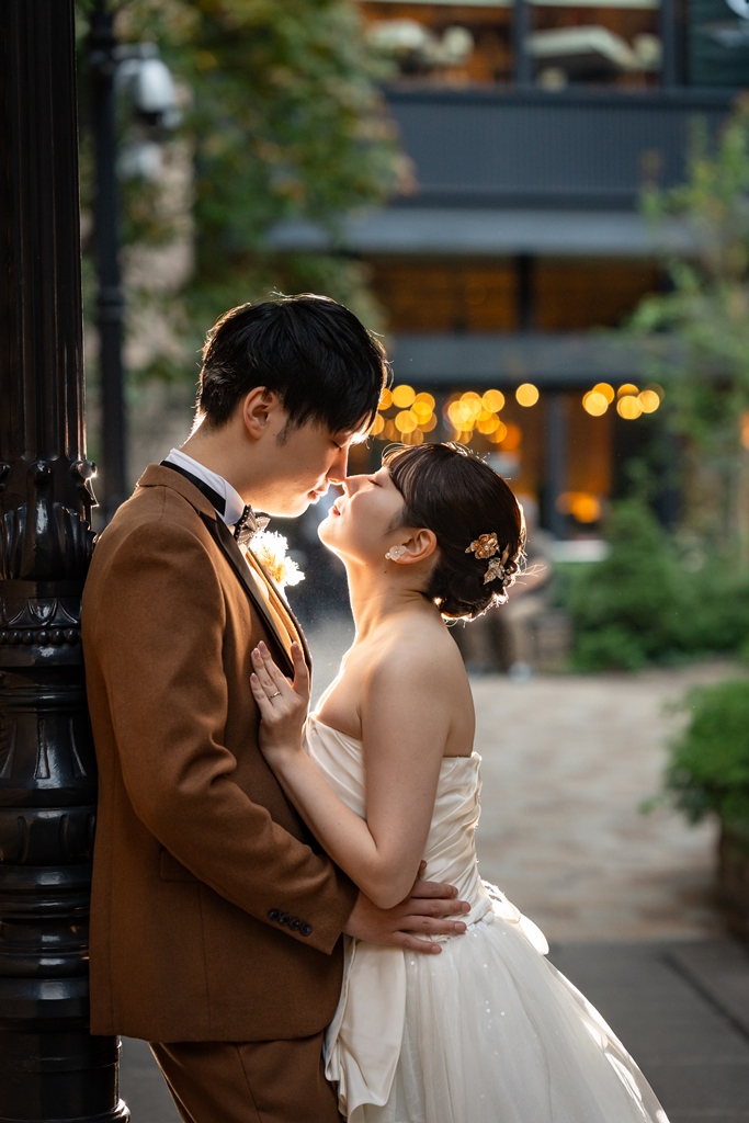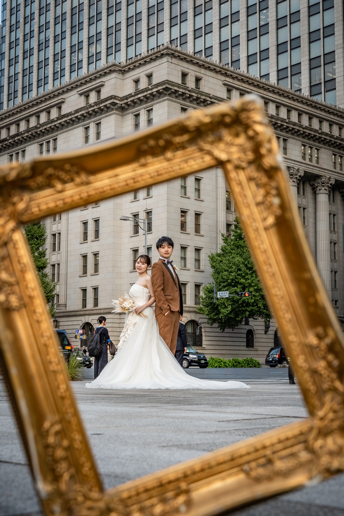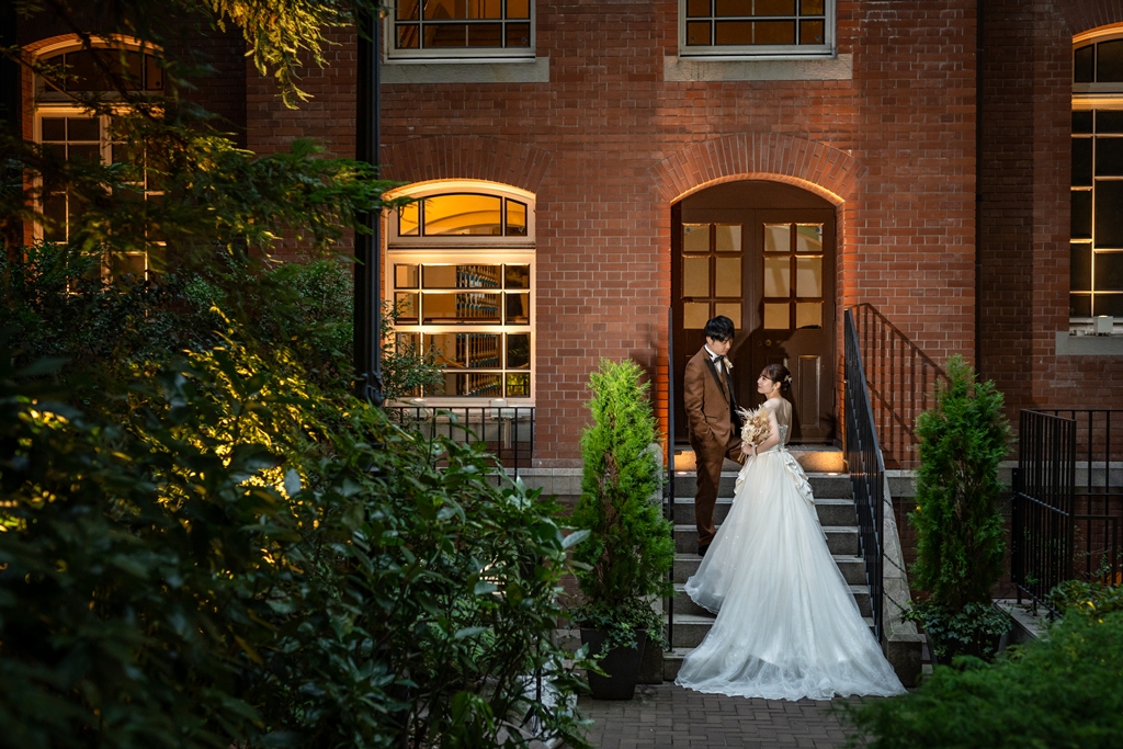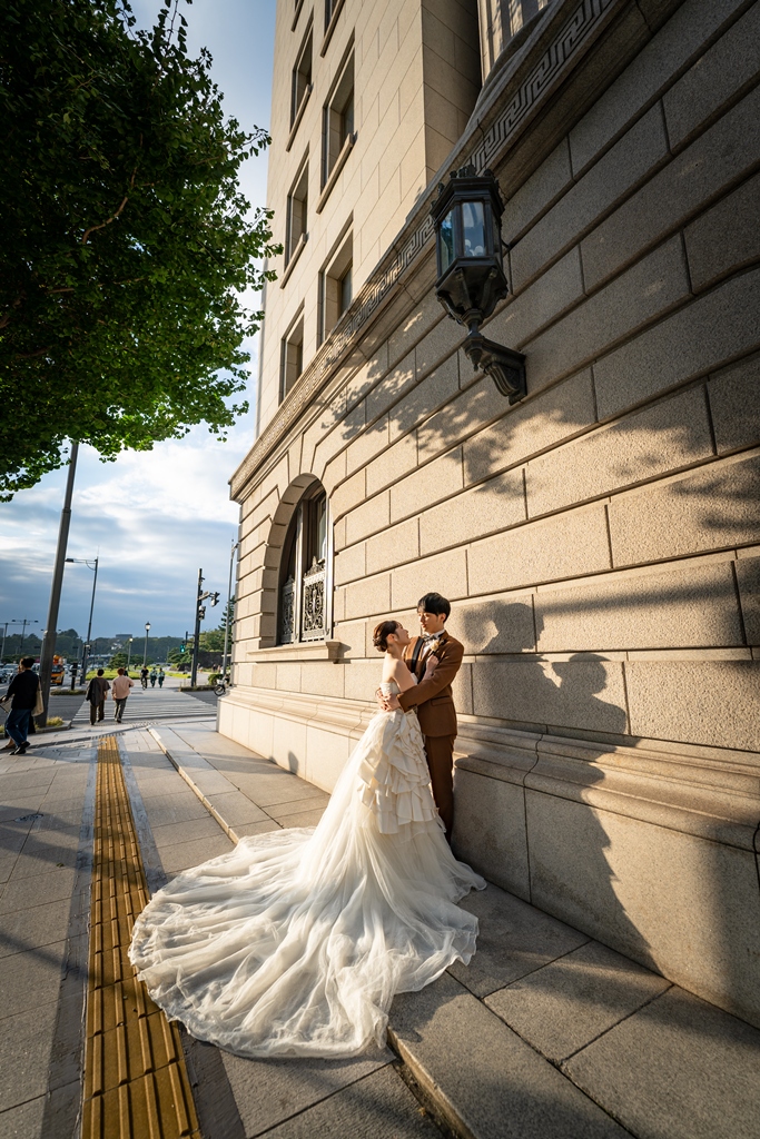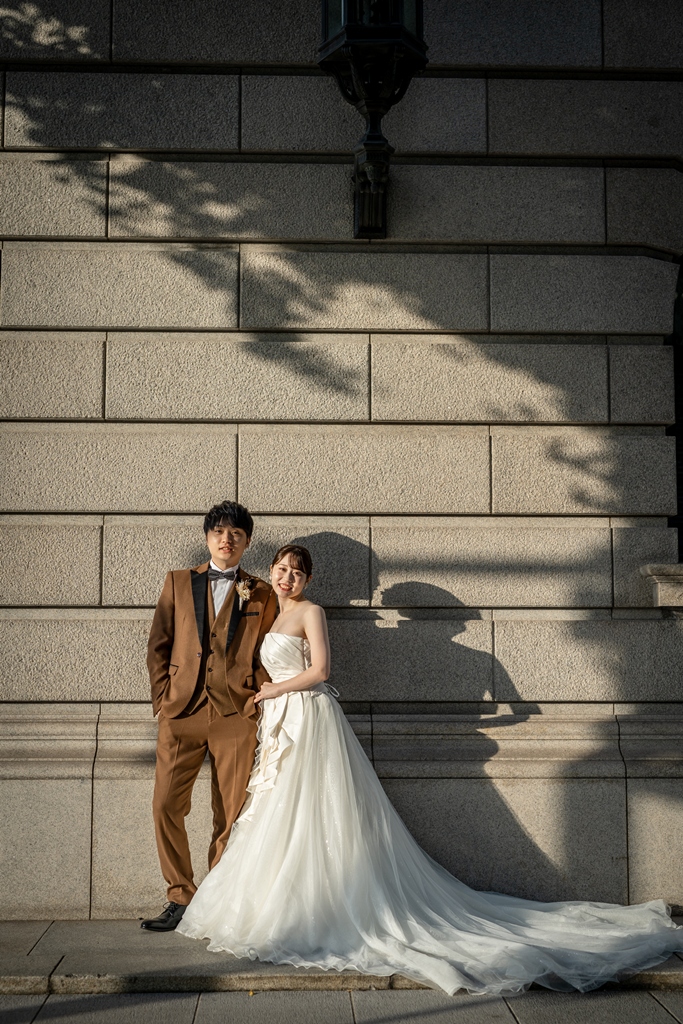 おふたりが手を取り合いながら駅舎の前を歩む姿は、この街の壮大さと気品のあるウェディングスタイルが見事に調和し、まるで映画の主人公のように輝いておりました。夕暮れの柔らかな光に包まれる時間帯も、夜景が灯り始めるロマンチックな瞬間も、どのシーンを切り取っても、そこにはおふたりだけの“特別な物語”がありました。
