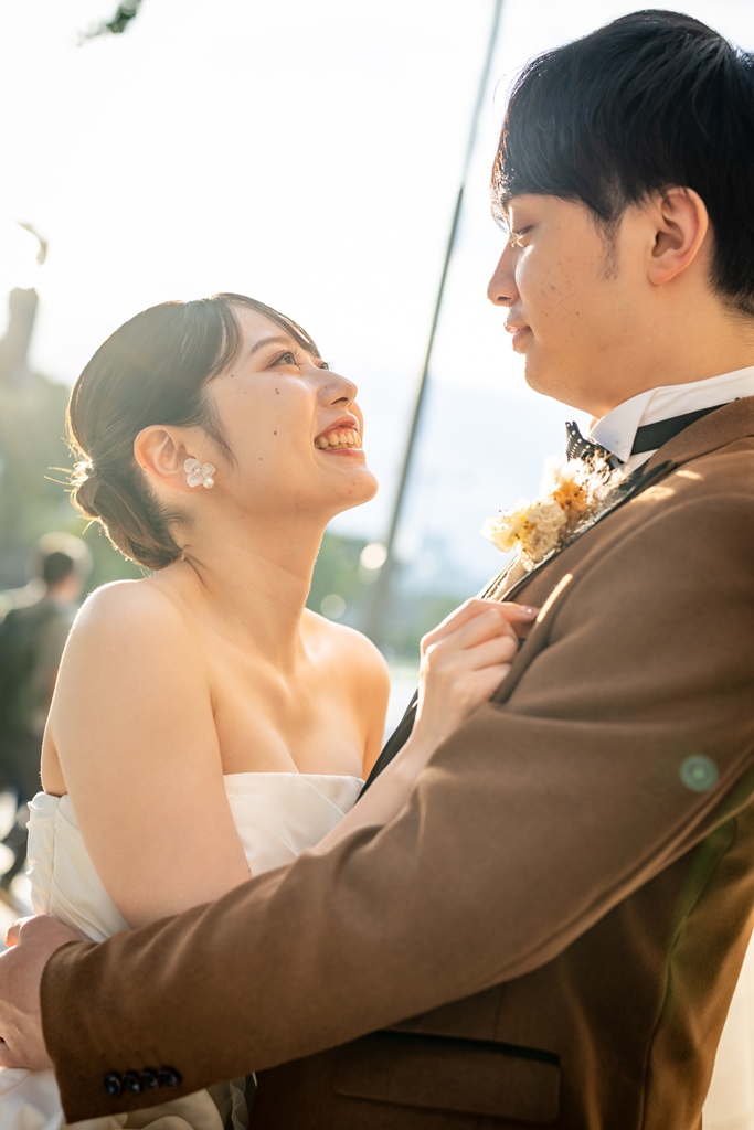 その大きな空の下、行き交う人々の中で、おふたりが並んで立つ姿は、これから始まる未来への希望と祝福に満ちていました。